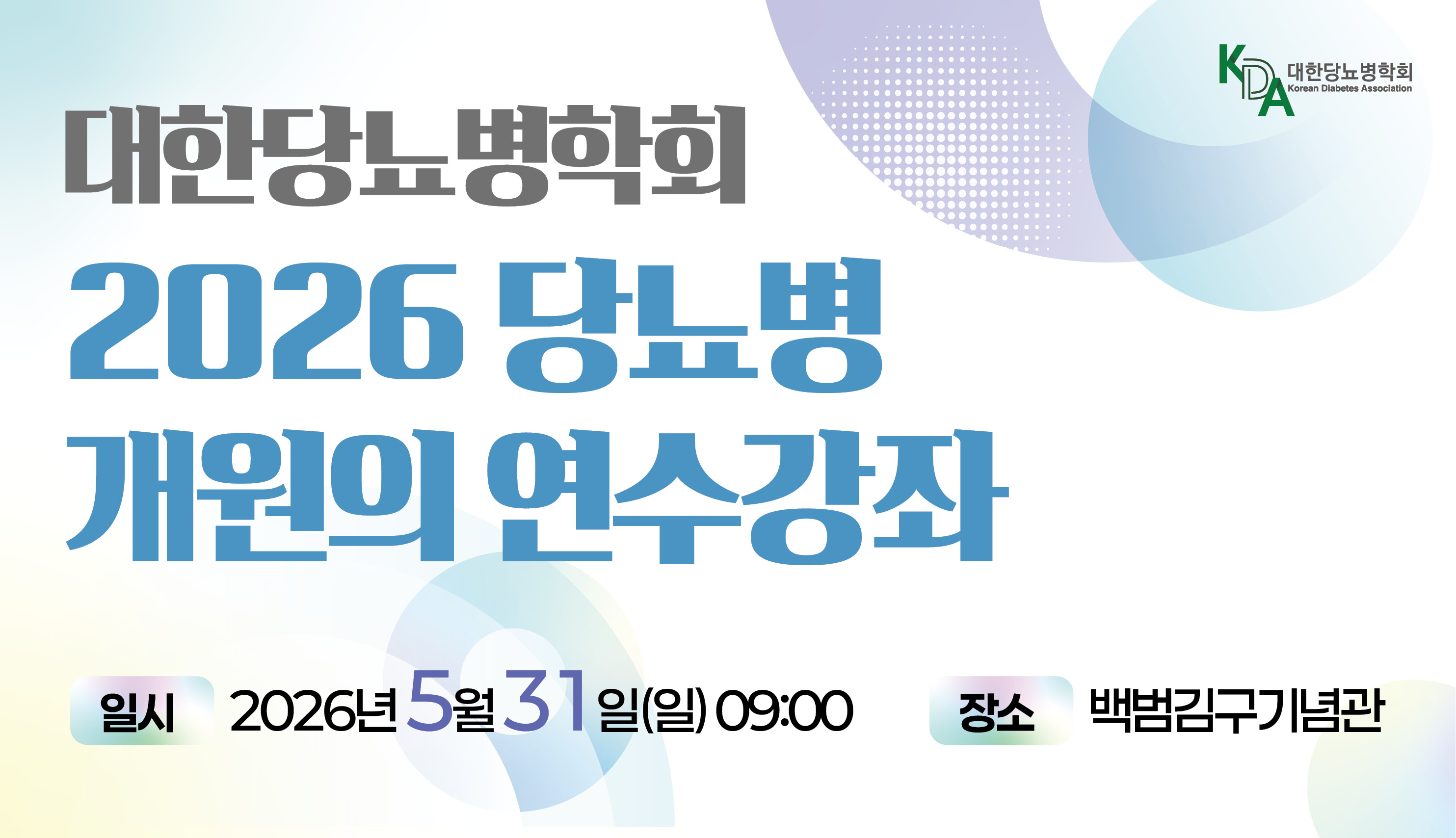 - 2026 당뇨병 개원의 연수강좌 사전등록 안내(5/31(일), 백범김구기념관) 2026-04-14