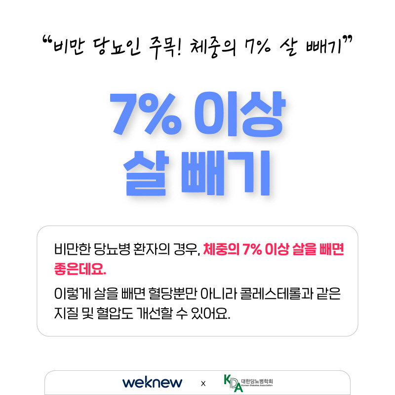 비만한 당뇨병 환자의 경우, 체중의 7% 이상 살을 빼면 좋은데요.